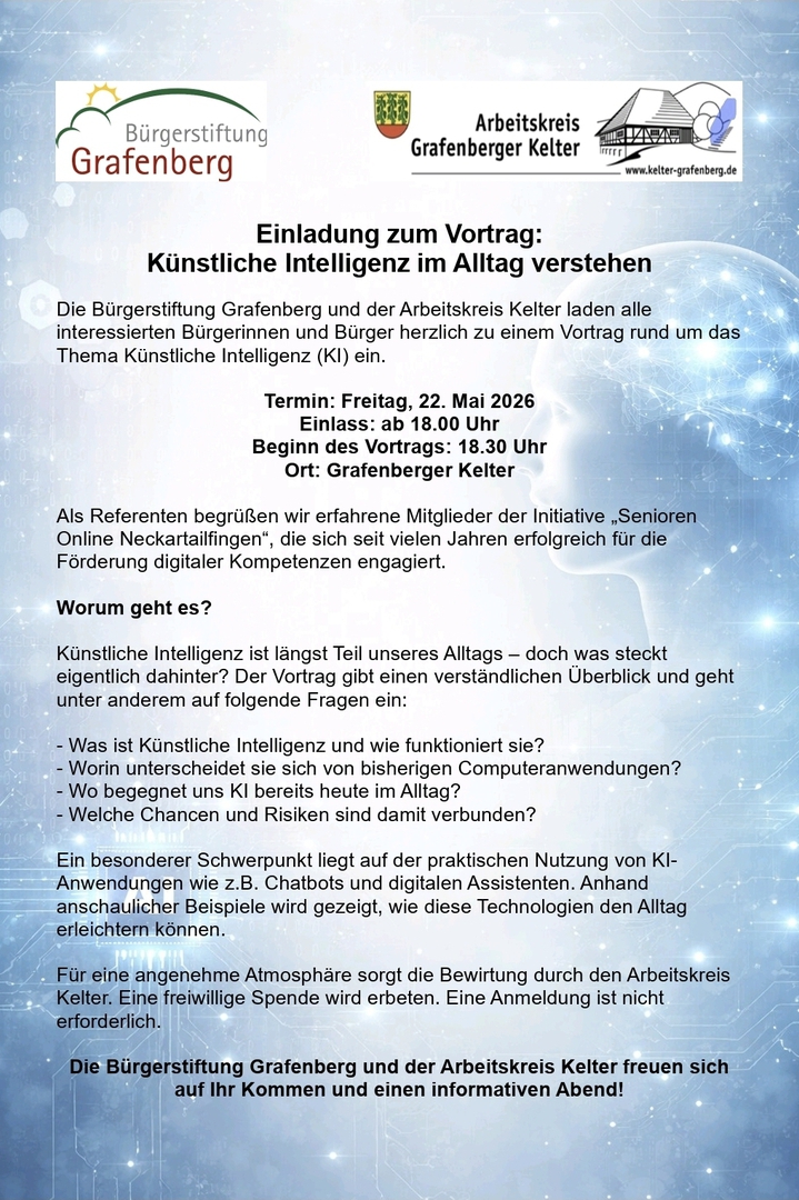 Die Bürgerinnen und Bürger Grafenbergs engagieren sich für eine lebenswerte Heimat aller Generationen und fördern den bürgerschaftlichen Einsatz zugunsten gemeinnütziger und mildtätiger Zwecke.
