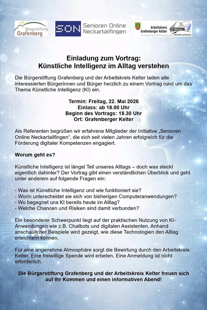 Die Bürgerstiftung Grafenberg bedankt sich herzlich bei allen ehrenamtlich engagierten Bürgern für ihre Teilnahme am Ehrenamtsabend am 15. Oktober 2025.