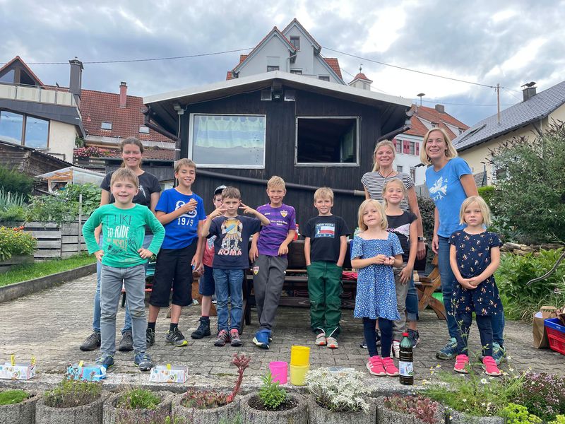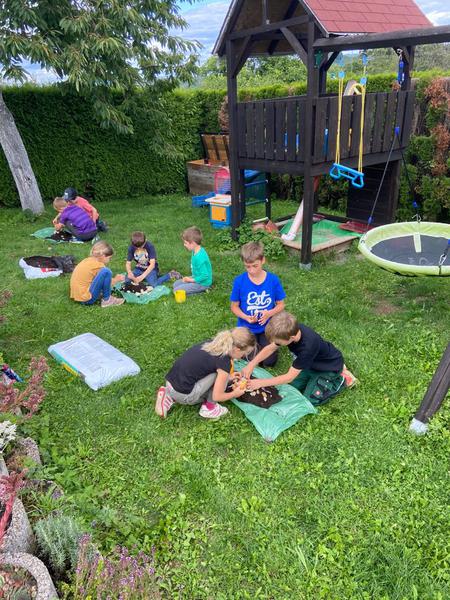 Wir hatten großes Glück, dass das Ferienprogramm der Bürgerstiftung Grafenberg am 6. August bei bestem Wetter im Garten der Familie Grad stattfinden konnte.