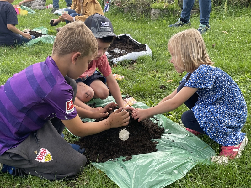 Die Kinder waren sehr motiviert und mit großer Begeisterung bei den angebotenen Spielen und Experimenten im Garten dabei.