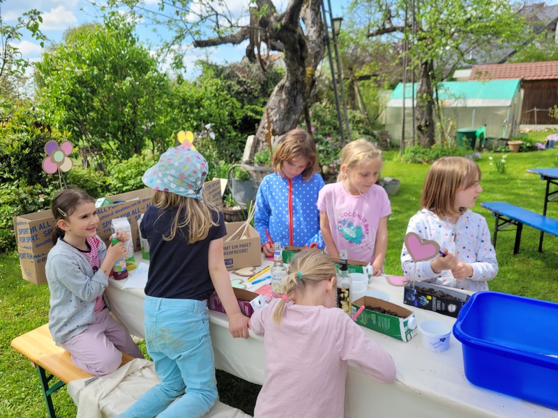 Für die kleinen GärtnerInnen hatte die Bürgerstiftung auch etwas vorbereitet: Die Kinder waren glücklich dabei Milchkartons in kleine Hochbeete umzufunktionieren und diese hübsch zu verzieren.