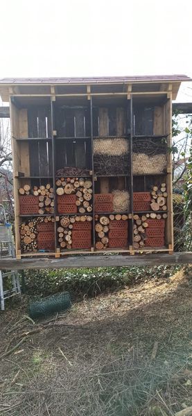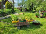 Beeindruckend war auch die Kreativität beim Upcycling der Gärtner*innen. Wir haben aus Fundstücken selbst gebaute Skulpturen und Steinmauern sowie ein Insektenhotel gesehen. Ein Lattenrost und ein alter Gartenstuhl dürfen nun den Bohnen beim Ranken helfen. Sogar ein ehemaliger Schweinetrog und eine vormalige Badewanne haben als Hochbeete für Erdbeeren eine weitere Verwendung bekommen.